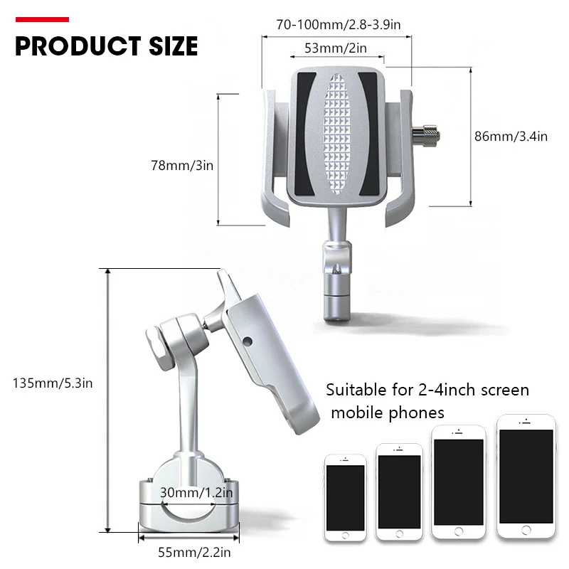 Driving Mirror 4-6.5 inch Phone Mount Aluminum Bicycle Handlebar Phone Holder Bracket Stand Adjusta